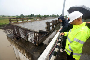Government officials inspect the construction site of the anomalous flood control project in Barangay Candating, Arayat, Pampanga, Sept. 23. — PHILIPPINE STAR/MIGUEL DE GUZMAN