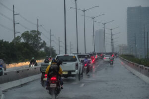Motorists and pedestrians endure heavy rains in Makati City. PHOTO BY RYAN BALDEMOR, THE PHILIPPINE STAR