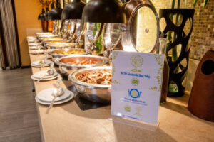 A BUFFET SPREAD at Taal Vista Hotel reminds diners to ‘Take only what you can eat,’ part of SMHCC’s Plate for the Planet initiative that reduces food waste and promotes sustainable dining practices. — SM HOTELS AND CONVENTION CORP.