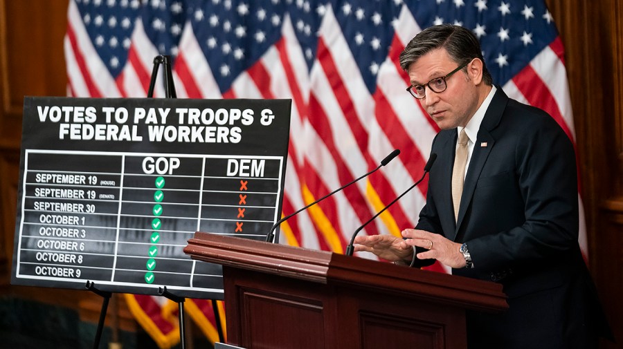 He dismissed the prospect of moving a stand-alone measure to pay the troops in the shutdown, saying Democrats should vote for the continuing resolution (CR) funding measures if they don’t want service members to miss a paycheck — though President Trump seems to have made the issue moot by directing the Pentagon to use other funds to pay their salaries.