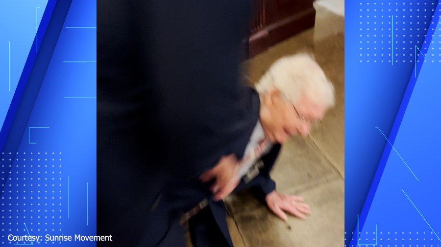 The video shows McConnell holding an aide’s hand as he walks. He then lets go of the hand and continues walking as volunteers and activists with the Sunrise Movement, which calls itself “the climate revolution,” ask him about ICE. He doesn’t answer, but he falls down, bracing himself with his left hand.