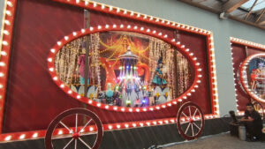 VIPs gathered at the storefront on Oct. 17 as the windows — with the theme “A Christmas of Wonders” — were revealed. Holiday-themed fair rides spun and whizzed around, while the windows were framed in glowing orbs. Each window features scenes filled with motion, festive red and gold accents, and characters such as toy soldiers, ballerinas, and magical creatures. Oversized ornaments, twinkling marquees, and delicate metallic details evoke the splendor of a vintage fairground.