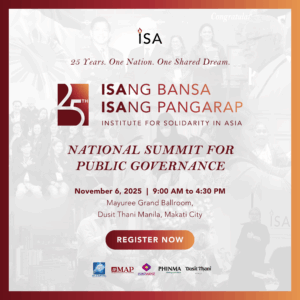 This commitment will be at the heart of the upcoming “ISAng Bansa, ISAng Pangarap: National Summit for Public Governance” on Nov. 6, a gathering of reform advocates, leaders, and integrity champions from both the public and private sectors.