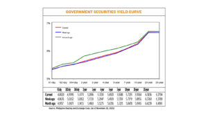 GS yields, which move opposite to prices, rose by an average of 1.73 basis points (bps) week on week, according to PHP Bloomberg Valuation Service Reference Rates data as of Nov. 28 published on the Philippine Dealing System’s website.